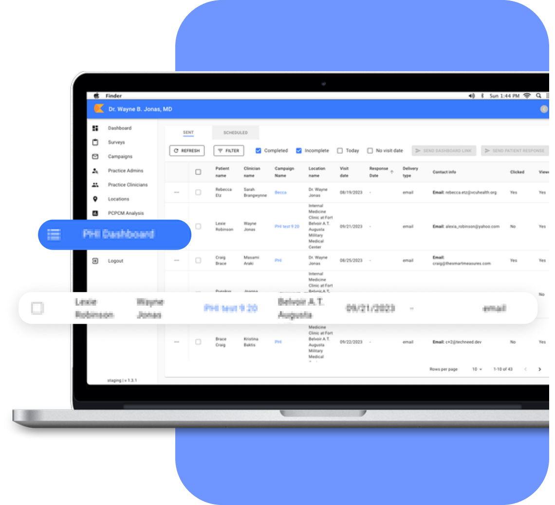 Allowing practices to field patient-reported surveys directly to patients via email, sms, and mail.
